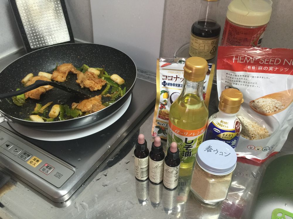 ご飯が炊けたので、レタスの上に、玉ねぎ、人参、豚肉を炒めたのを載せて、今日の味付けは、焼き肉のタレ。麻の実ナッツやエゴマ油も忘れずに。