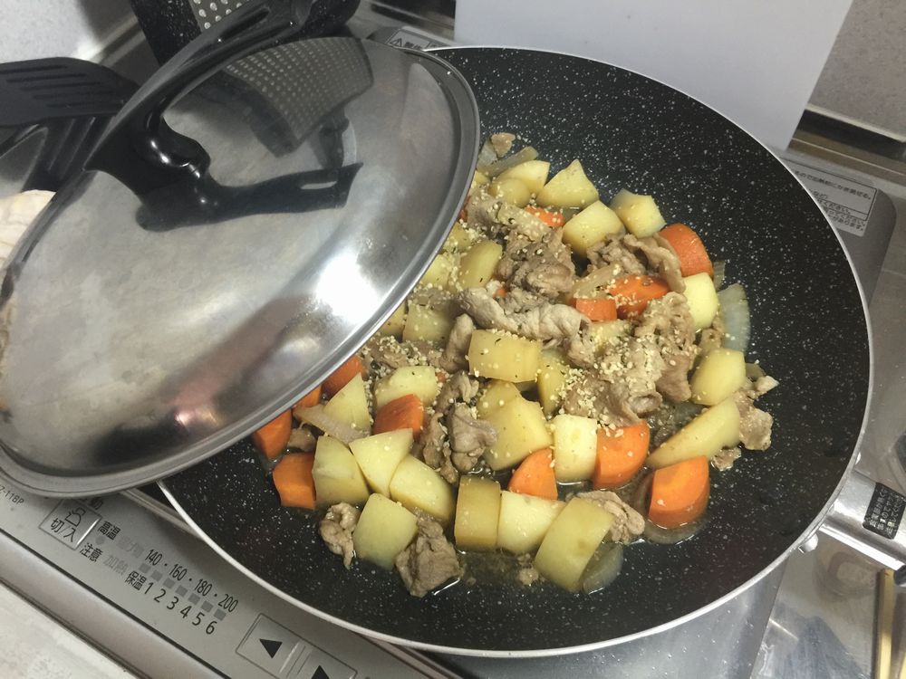 蒸かしジャガイモを潰す音が気になるようで、「早く帰れ」と言われるけど、マッシュポテトを作った後、明日のためのカレーを作る。